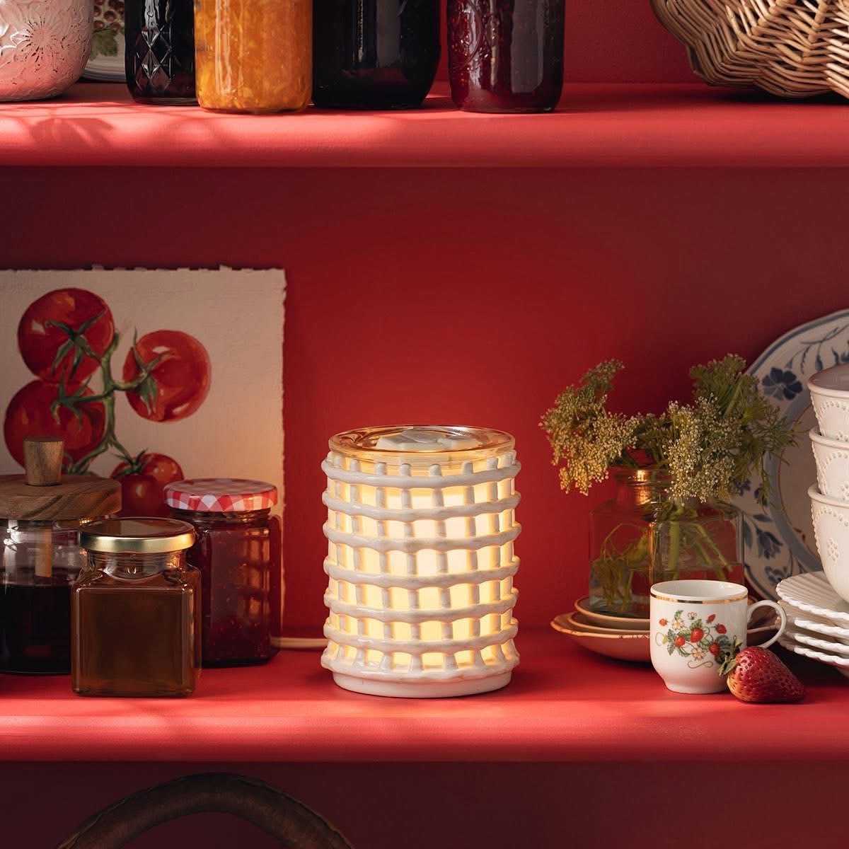 TheĀ Cottage Weave WarmerĀ has that hand-crafted, basket-like look that softly glows when you turn it on. Itās cozy without being heavy⦠like it belongs in a kitchen that always smells good.