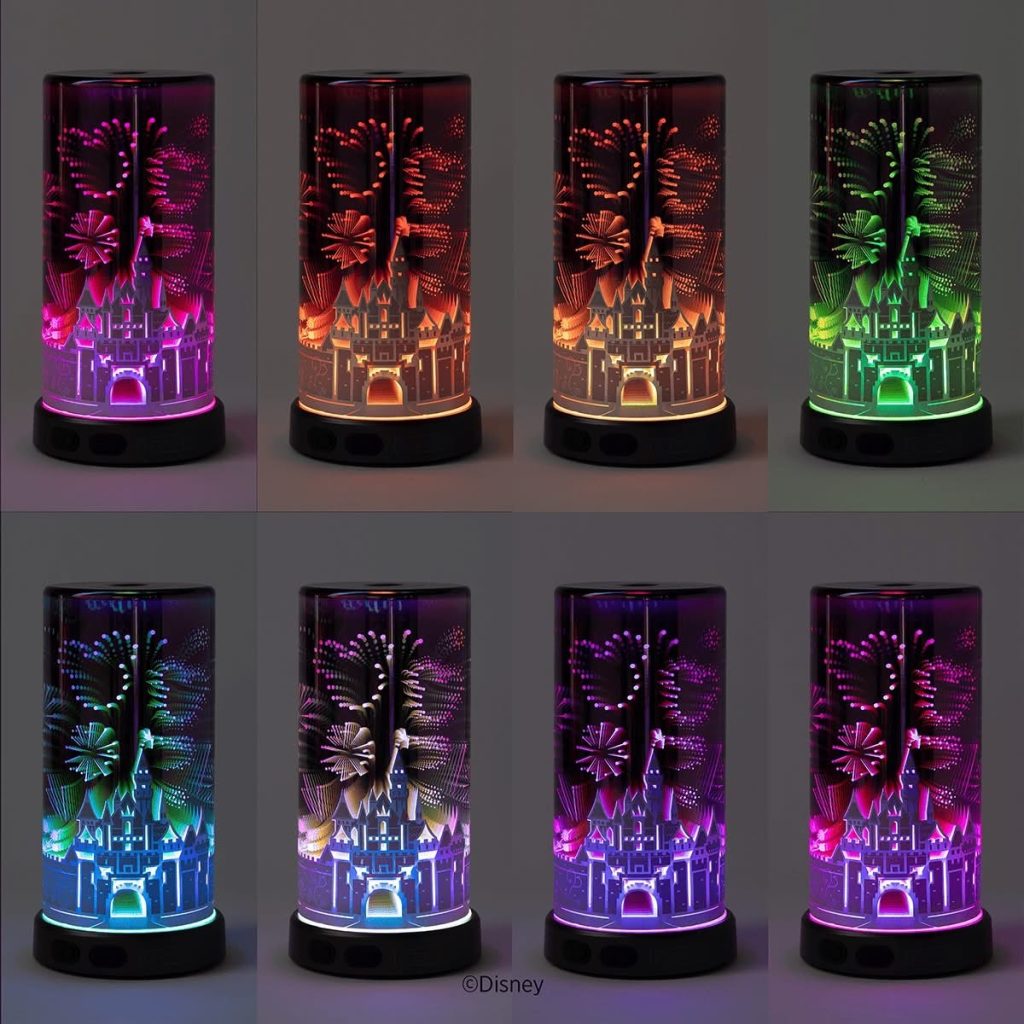 The design wraps Sleeping Beauty Castle around the shade, and once it’s turned on, the light dances overhead like a fireworks show at night. Think standing on Main Street, waiting for the sky to sparkle.